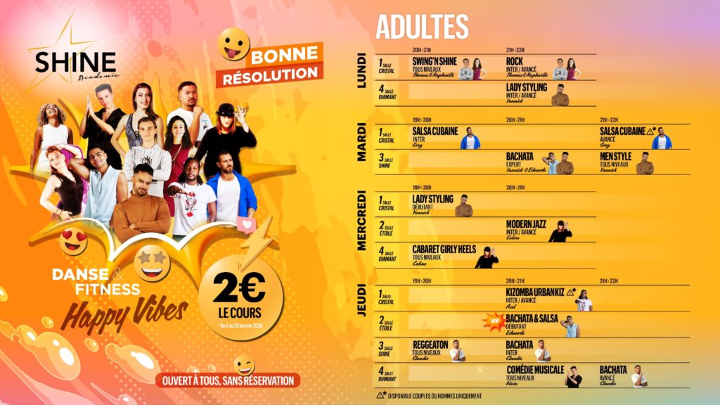 - 1 cours par semaine 195€/an